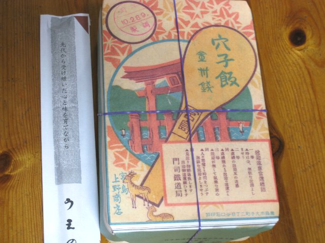 × [PR]上記の広告は3ヶ月以上新規記事投稿のないブログに表示されています。新しい記事を書く事で広告が消えます。 遅まきながら、体重が気になる 私たち夫婦はバナナダイエットに 挑戦しました。 朝はバナナを好きなだけと常温の水を摂る。 昼と夜は普通に食事。夕食は8時までに。 おやつはOKらしいけど、おやつ抜きにしました。 私は元々冷え症なので、3日目に便秘気味になり 寒いし、体調がよくないのでリタイア。 バナナは南国の果物なので、陰の食物は胃腸が弱く 冷え性には向きませんでした。 なので、普通の食事を3回、夕食を少なめにすることにしました。 しかし、夫は豆腐ダイエットで5キロ落としてから 俄然張り切っていまして、バナナも毎食3本食べて元気です。 結果は一ヵ月後くらいを目安にします。 バナナの保存は吊り下げた方がよいらしい。 以前からこんな感じでバナナを吊っています。 左は懐中電灯がぶら下げてあります。特に意味はないです。 広島には「アンデルセン」本店があります。 ここもはずせないお店です。 外観からおしゃれで高級感が漂います。 元は帝国銀行の建物で、原爆で焼け残った建物を ベーカリーやブライダルのショップとして再生したそうです。 ベーカリー、喫茶、お花屋さんなどを展開していて、 店内はデンマークのパンをメインにしてるせいか、雰囲気が ヨーロッパ的です。 豊富な種類のパンの他にもお菓子や惣菜が充実しています。 店内を見てるだけでも満足してしまいます。 帰り道に宮島口のあなごめし屋さん「うえの」に寄りました。 創業が明治30年とのことで、お店すらも深い味わいが感じられます。 昼はお客さんが満員で1時間待ちといわれて退散。 夕方はだいぶ落ち着いていたので、ゆっくりできました。 なのにせっかくのあなご丼の写真を撮り忘れました。 大中小あっておなかのすき具合で量が選べます。 炊き込みご飯の上に炭火で焼いたほんのり甘いあなごが ギッシリ並んでいます。その横に甘酢しょうが(がり)が 添えられているので食が進みます。 お漬物と味噌汁付き。 お土産に折り詰めのあなごめし弁当を買いました。 包み紙は昭和初期の包装紙を復刻したそうです。 日付が?なのはご愛嬌。 広島は何回か行っていますが、広島市内と宮島、廿日市あたりしか 行かないので、広島を語るのはおこがましいのですが、 いつ行っても満足満足の気分になります。 最初は生の広島弁に驚きましたが、今はいい感じに聞こえます。 広島の街中は便利で何でもあるので、羨ましい気がします。 交通アクセスもJRはもとより、市電、バス、アストラムラインが あるし。道は広くて綺麗。食べ物もおいしい。 市の中心にある原爆ドームを見るたびに胸が痛くなりますが、 古いものを大事に守りながら、新しいものをどんどん入れていく 広島のよさを感じます。 福岡から広島の高速代は、通常片道5400円です。 今回は1000円になったので、往復1万800円のところ2000円で済んだので その分買い物に使えました。 ありがたいことです。 広島市内に入って、本来の目的は西区の「かっちゃん」という お好み焼き屋さんでしたが、今日はパスしました。 そのまま広島市の中心、中区に向かいました。 今後博多に進出予定の東急ハンズですが、今のところ 一番近い店舗は広島にしかないので、必ず行きます。 今回もハンズで買い物をしてから、広島の福屋デパートと 天満屋の地下を覗いてみました。 服や小物は大好きなのですが、物を増やさないという 自分の決まりがあるので、買うものを必要最低限で吟味すると、 買うものは家庭用品と食べ物になってしまいました。 それでデパートの地下食料品売場は、私の一番興味のある場所で、 尚且つ、その土地の食べ物を見つける手っ取り早い場所でも あります。 かわいいチー坊のイラスト入りチチヤス牛乳。 裏面もかわいい。 広島は瀬戸内海の気候を利用してレモン栽培が盛んなので、 やはりレモン製品を。粉末を水に溶かして飲むようです。 「ケンミンSHOW」でも取り上げていました。 もう一つ、レモンマーマレード「初恋」。 初恋は「レモンのように酸っぱくてさわやか」な気持ちなのかな。 古めかしいようでほほえましいネーミングです。 そういや「初めてのキスはレモンの味」というのもあったっけ。 広島といえば牡蠣。 かきしょうゆです。宮島の鳥居がこっそり描いてありますね。 卵かけごはんや冷奴によさそうです。 高速料金が1000円になったので、早速広島へGO! 4/4日曜日。 あいにく天気は雨で、おまけにとても寒い。 春だというのにいつまでも冬を引きずっています。 広島はいつ行っても楽しい。 車でいける(体力限界)の距離が広島なので、 1年に1回は出かけてフラフラして日帰りです。 いつもは明るい瀬戸内海もどんより 天気は悪いし寒いのに、高速は車がいっぱいの上、広島に入っても 結構混んでいました。お昼を食べようにもどこの店も大勢の 待ってるお客さんがいて、なかなか